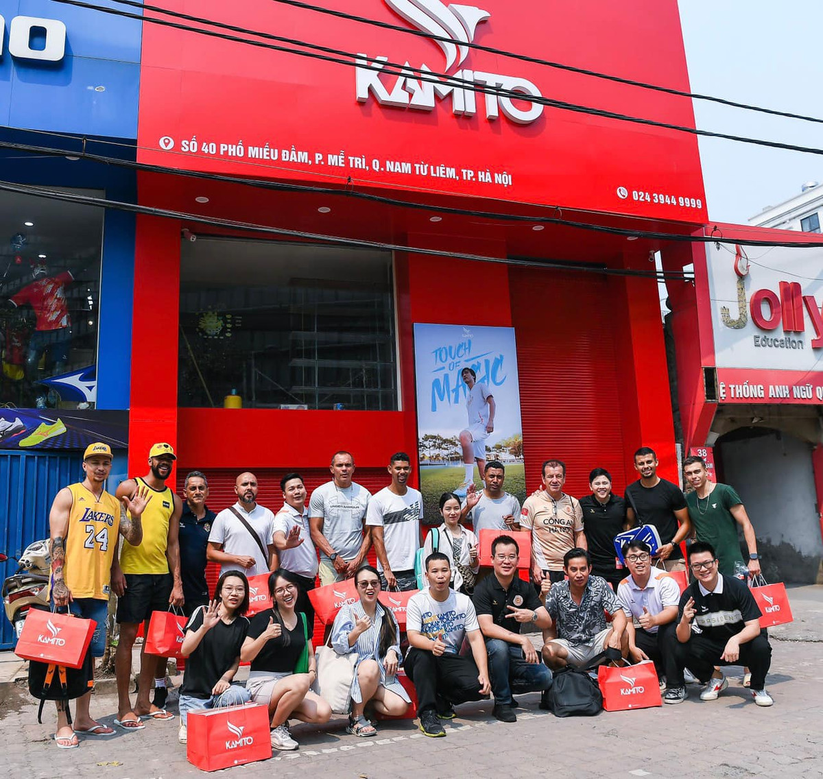 Tại cửa hàng của Kamito, các cựu sao của đội tuyển Brazil đã dành thời gian trải nghiệm những mặt hàng của Kamito sản xuất như trang phục, giày thi đấu...