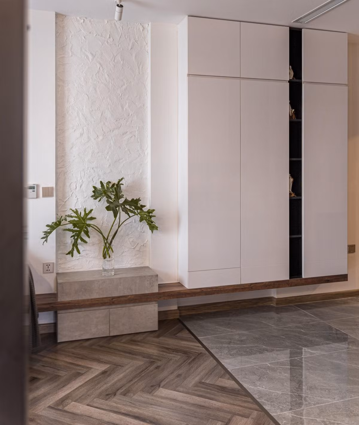 Chị Uyển Nhi tâm sự, khi làm nhà mới, chị rất chú trọng đến vấn đề phải làm thật nhiều tủ. Căn nhà cũ của chị khá rộng, lại có 2 bé nên gia đình có rất nhiều đồ. Khi hai vợ chồng bàn bạc chuyển sang căn hộ mới, diện tích bé hơn, chị rất đắn đo.