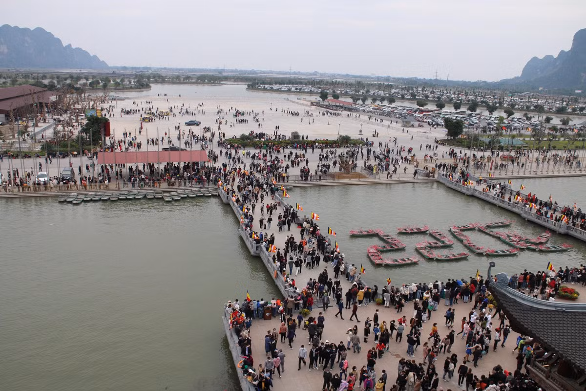 Lượng người đổ về chùa Tam Chúc rất lớn.