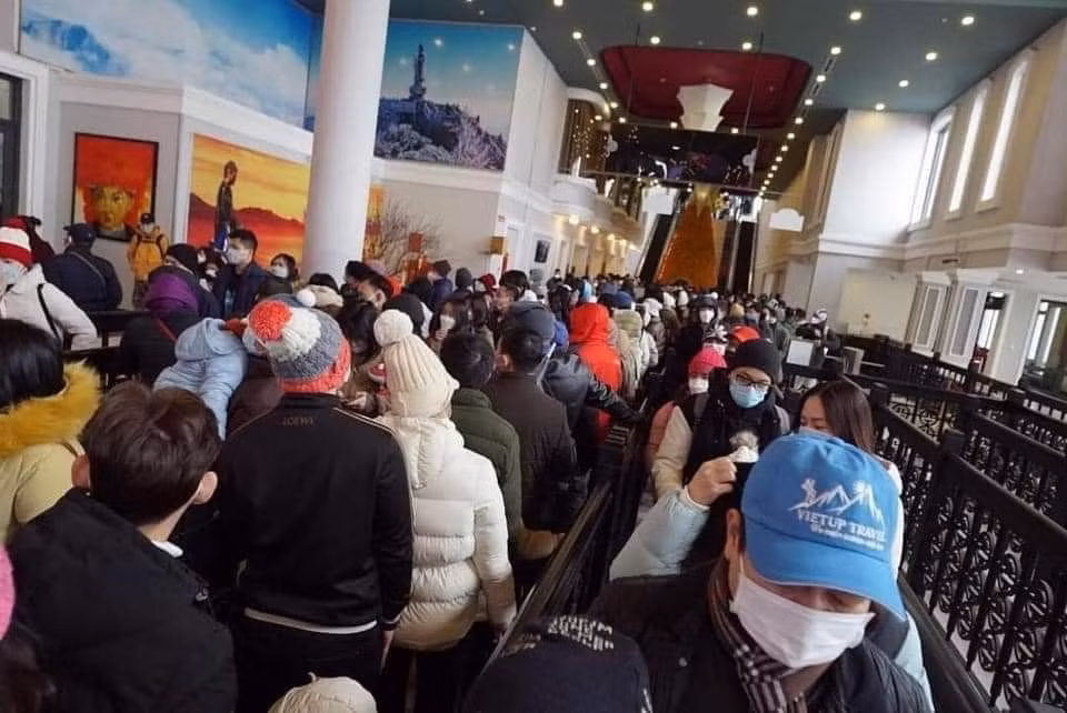 Hàng nghìn du khách đổ về Fansipan. Ngày 4/2, nhiều du khách đã đổ về Lào Cai leo Fansipan- đỉnh núi lớn nhất Đông Dương.
