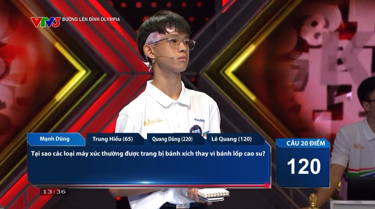 Mạnh Dũng trong lượt thi Về đích cũng có 1 câu trả lời đúng. Trung Hiếu 2 lần bấm chuông nhưng chỉ đưa ra 1 đáp án chính xác, lấy đi của Quang Dũng 20 điểm. Điểm số của Mạnh Dũng là 120 điểm.