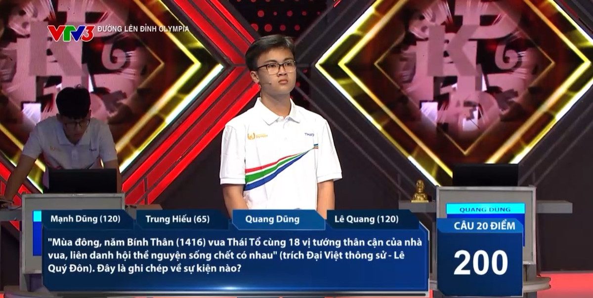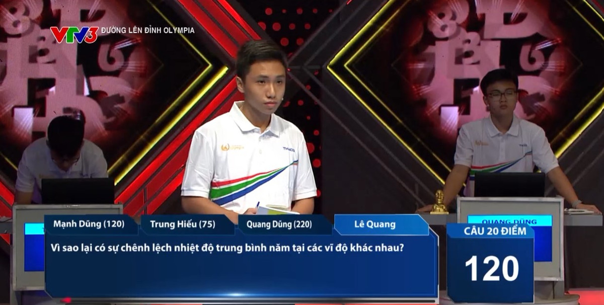 Như vậy là tấm vé đầu tiên vào thi tháng 3 quý 1 đã có chủ nhân, đó là bạn Mai Quang Dũng (THPT Vĩnh Linh - Quảng Trị). Những trận đấu tiếp theo để tìm ra các gương mặt xuất sắc vào tranh tài sẽ được phát sóng lúc 13h chủ nhật hàng tuần trên VTV3.