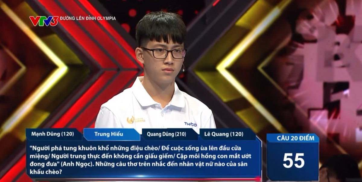 Trung Hiếu Về đích cuối cùng và cũng không đưa ra được đáp án đúng nào. Mạnh Dũng đã liên tiếp có 2 câu trả lời đúng, lấy đi của Trung Hiếu 40 điểm. Quang Dũng 1 lần trả lời sai trong lượt thi của Trung Hiếu.