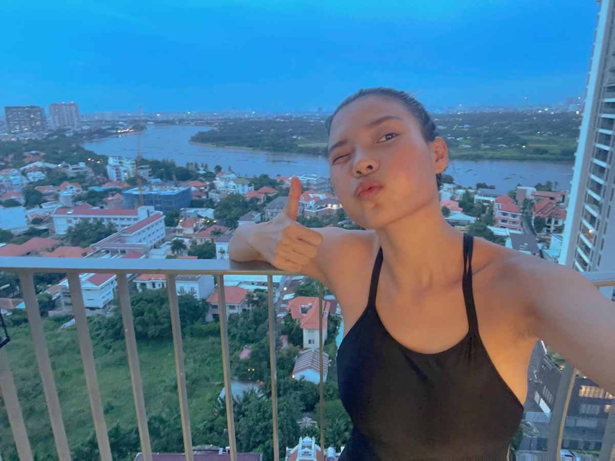 Khánh Linh khuyên mọi người nên tập thể dục ít nhất 1 tiếng/ngày. Chị đăng ảnh mướt mồ hôi sau khi tập Zumba.