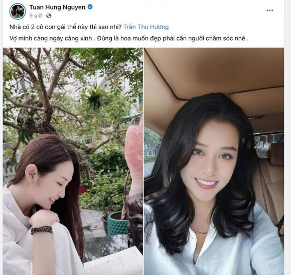 Mới đây, trên trang cá nhân của mình, Tuấn Hưng đã có màn nịnh vợ khiến dân tình cười rần rần. Nam ca sĩ đăng ảnh giả gái của mình trông rất gì và này nọ cùng ảnh góc nghiêng xinh như mộng của bà xã Hương Baby. Anh chú thích cực lầy rằng: "Nhà có 2 cô con gái thế này thì sao nhỉ? Trần Thu Hương. Vợ mình càng ngày càng xinh. Đúng là hoa muốn đẹp phải cần người chăm sóc nhé".