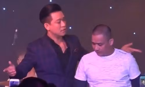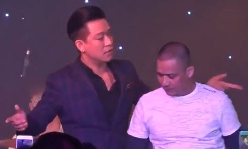 | Tuấn Hưng ngỡ ngàng vì bị thanh niên hổ báo giật micro khi đang hát. |