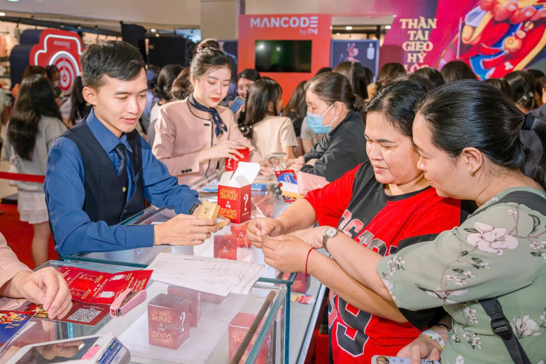 Hàng trăm khách hàng tham gia săn lộc vàng may mắn tại Trạm Tài Lộc Xuyên Việt của PNJ. Ảnh: PNJ