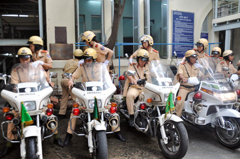 | Đầu năm 2013, cùng với những đổi mới khác trên các lĩnh vực hoạt động, lực lượng Cảnh sát giao thông (CSGT) đường bộ - đường sắt tại một số tỉnh, thành lớn đã đưa nữ CSGT tham gia đội hình dẫn đoàn mà trước đây vốn chỉ do các nam CSGT đảm nhận. |