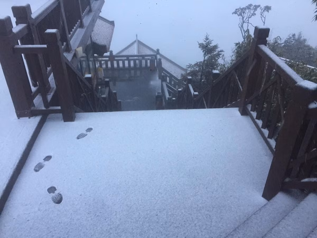 Đặc biệt, tuyết rơi dày phủ trắng quần thể tâm linh Fansipan khiến nơi đây càng khoác lên vẻ đẹp như trong những thước phim cổ trang.