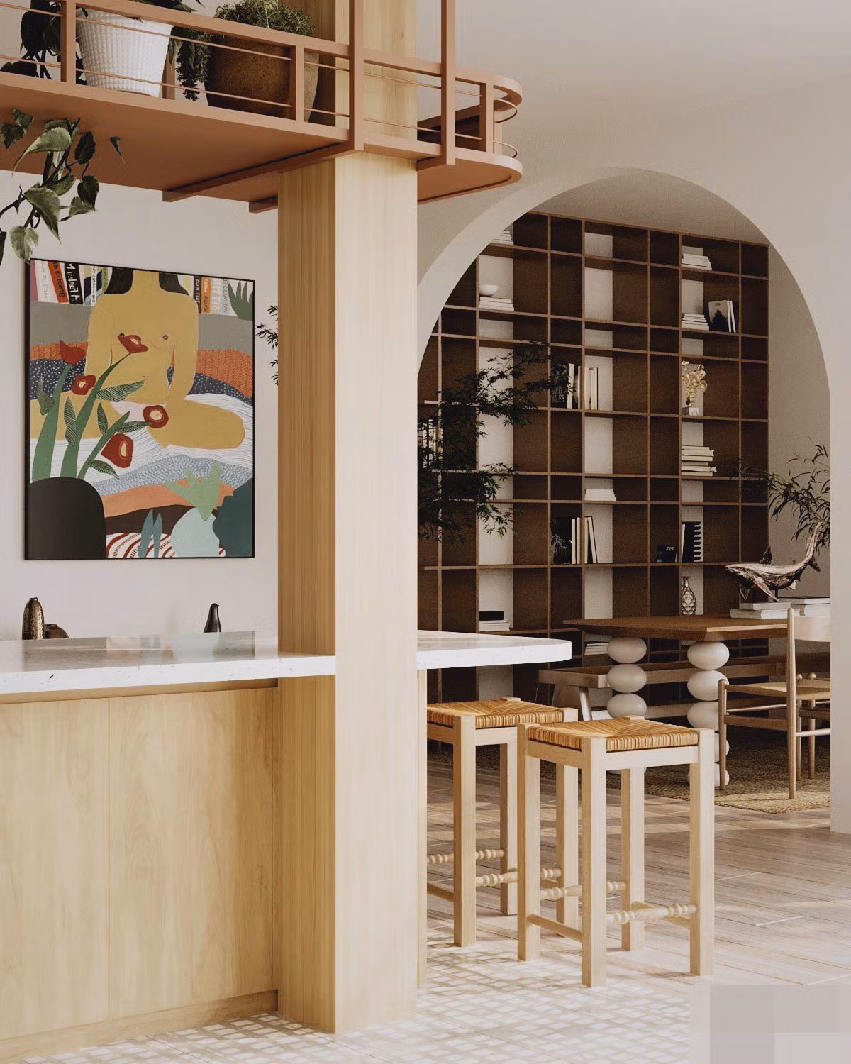 Màu sắc trung tính, nhẹ nhàng, tiết chế chi tiết rườm rà mang đến một không gian chung ấm áp.