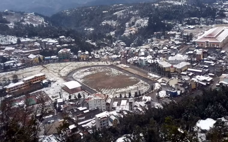 Sa Pa ngày tuyết rơi toàn một màu trắng.