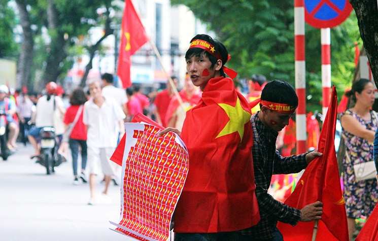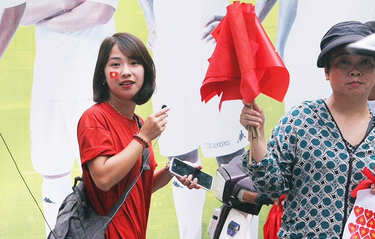 (Kiến Thức) - Trước giờ lăn bóng giữa đội tuyển U23 Việt Nam và U23 UAE thì trên đường phố Hà Nội cờ đỏ, băng rôn... cổ vũ được bán đỏ rực. Trong khi đó, các cổ động viên khí thế hừng hực đổ về sân vận động Hàng Đẫy