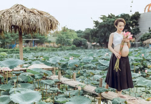 Thời gian gần đây, những bà mẹ trẻ đi chụp ảnh khoảnh khắc mang bầu ngày một nhiều. Trong khi phần đông các chị em mang thai chọn chụp ảnh trong studio để đỡ phải đi lại mệt mỏi hoặc có chăng cũng chỉ là chụp ngoại cảnh ở những địa điểm gần thì cô giáo trẻ tên Hải Yến lại có ý tưởng độc đáo khi chọn chụp ảnh với hoa sen.