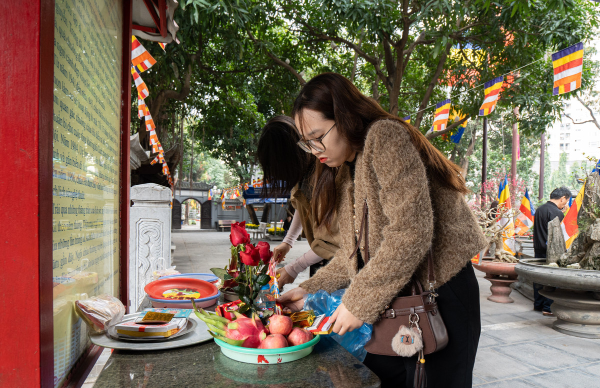 Ngày 14/2, cận Tết Bính Ngọ 2026, nhiều bạn trẻ tìm đến chùa Hà thắp hương, dâng lễ tạ ơn, cầu mong một năm nhiều may mắn bình an và có tình duyên mới.