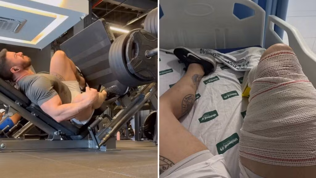 Những hình ảnh cho thấy vận động viên thể hình đứng trước máy tập ép chân, nơi anh ta bắt đầu bài tập dường như không gặp sự cố nào. Tuy nhiên, chỉ vài giây sau, khối lượng 400 kg đã vượt quá khả năng kiểm soát của anh ta, khiến một chân của anh ta bị duỗi ra một cách dữ dội.