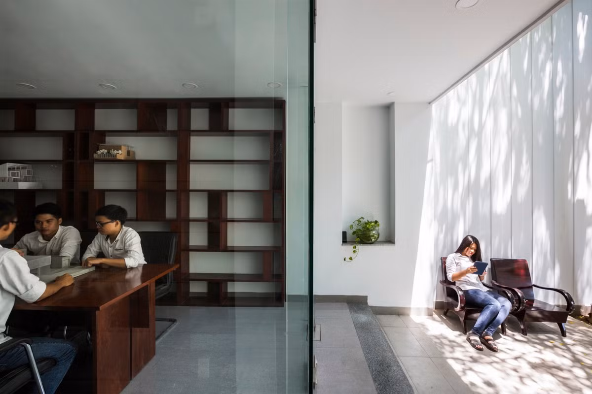 Các kiến trúc sư đã biến tòa nhà này thành một văn phòng làm việc thân thiện và hài hòa, có một mối quan hệ cộng sinh với môi trường xung quanh.
