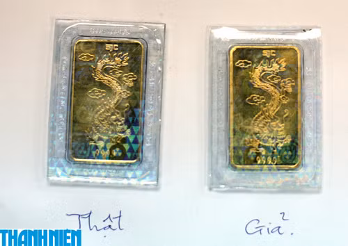 Theo SJC, miếng vàng này được dập rất tinh vi, rất khó phân biệt với vàng SJC thật, đặc biệt được đóng gói trong bao bì thật. Theo đại diện SJC, người làm giả đã rạch phần sau bao bì của miếng vàng SJC rồi bỏ miếng vàng nhái vào, sau đó dán thêm một lớp keo và dập lại. Do vậy, khi nhìn kỹ thì phần sau của miếng vàng làm nhái này dày hơn một chút so với miếng vàng thật. Trọng lượng của miếng vàng nhái tương đương vàng thật nhưng về chất lượng thì hơi non một chút so với vàng 99,99 của SJC.