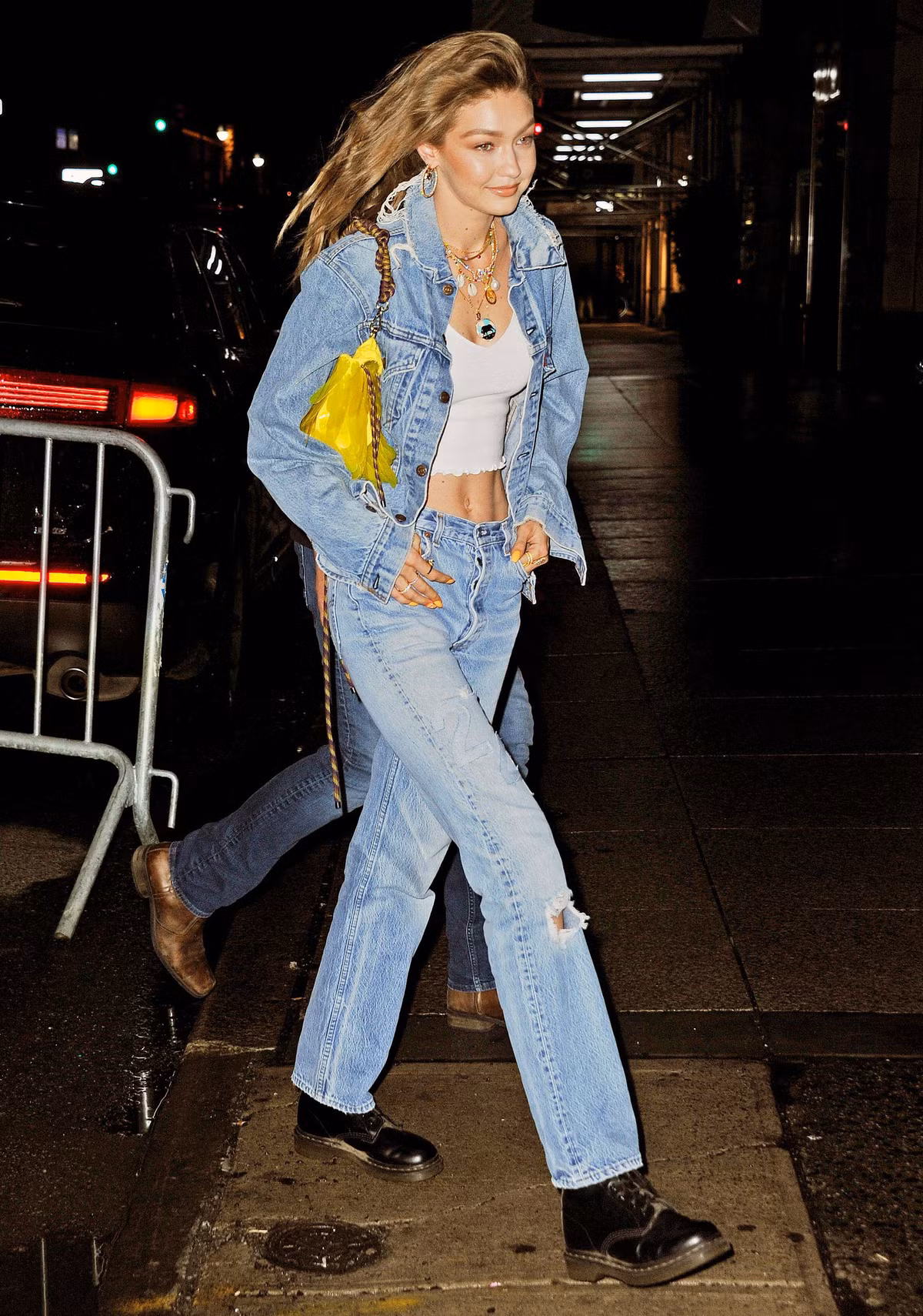 Denim on denim là công thức phối đồ mãi trường tồn theo năm tháng. Để tạo nên một bộ đồ sành điệu với công thức này không hề dễ dàng. Tuy nhiên, khi biết cách sử dụng đúng phụ kiện, bạn đã thành công một nửa. Tyra Banks mang đến tạo hình trẻ trung, cá tính khi diện đồ jeans. Mặt khác, cặp chị em người mẫu Gigi và Bella Hadid thể hiện khía cạnh gợi cảm, hoài cổ. Bạn có thể phối denim on denim cùng giày cao gót hoặc boots cao cổ. Tuy nhiên, hãy để ý kỹ đến chất liệu và tông màu đậm nhạt của đồ denim khi kết hợp trang phục. Ảnh: Instyle, Us Weekly.