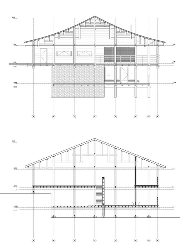 Thiết kế tập trung vào thiết kế mở để mô phỏng tự nhiên cảnh quan nông nghiệp xung quanh và biến nó thành trải nghiệm. Cụ thể, mặt bằng của phòng khách được bố trí theo 3 tầng khác nhau, bắt đầu từ lối vào và cao dần từ khu vực tiếp khách đến bục nghỉ và ban công. Ở tầng trên, kỹ thuật này tiếp tục mở rộng theo chiều dọc.