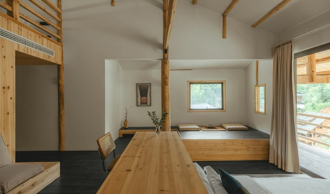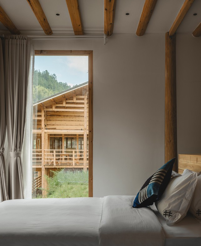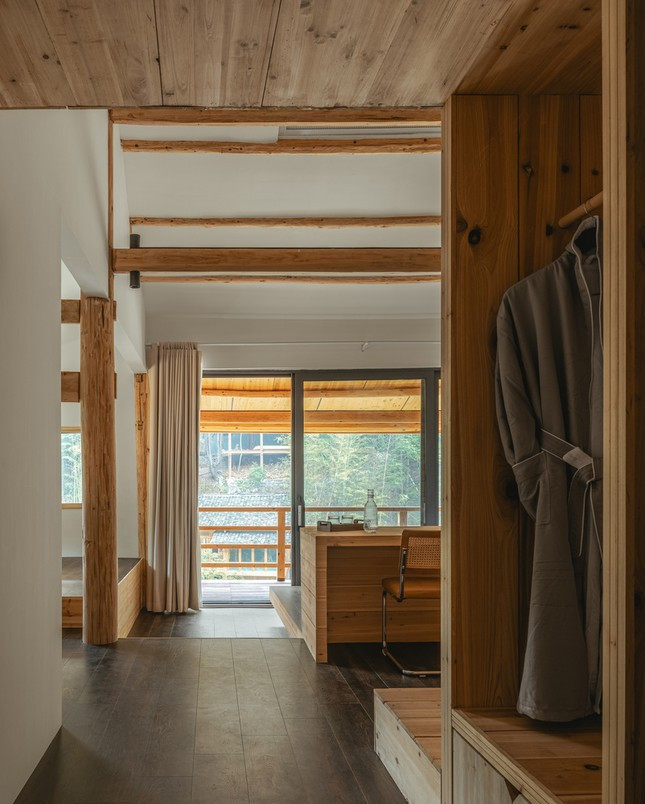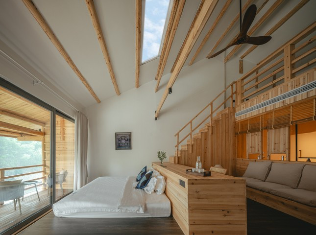 Gỗ linh sam được sử dụng cho toàn bộ kết cấu ngôi nhà gỗ, mỗi phòng được thiết kế riêng để phù hợp với các chức năng.