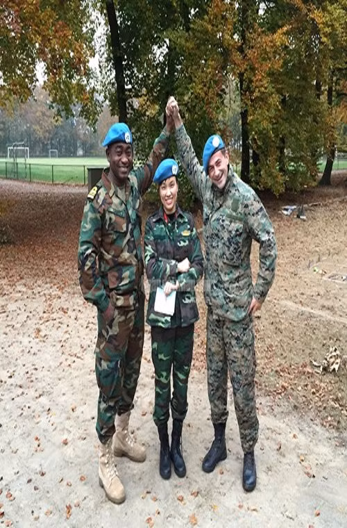 Thiếu tá Đỗ Thị Hằng Nga thân thiện với các sĩ quan các nước tại Hà Lan.