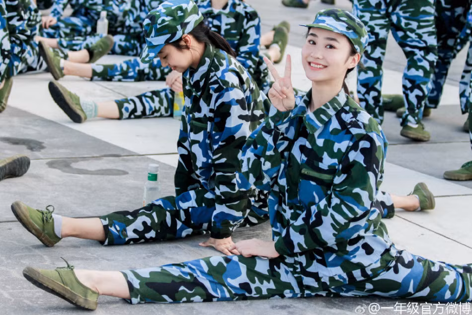 Sau khi nhập học đầu tháng 9, các tân sinh viên xinh đẹp này đang tham một khóa tập quân sự ngắn hạn.