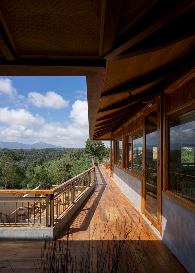 Công trình mang dáng dấp của nhà sàn Tây Nguyên, thông qua việc chia nhỏ mái dốc, bố trí nhiều cốt cao độ và dành nhiều không gian cho hoạt động ngoài trời.