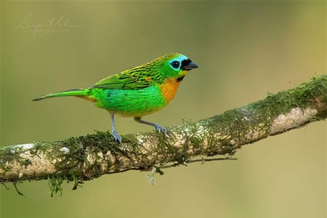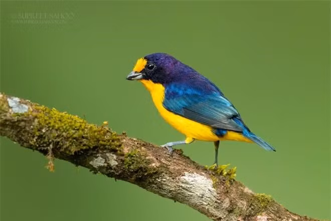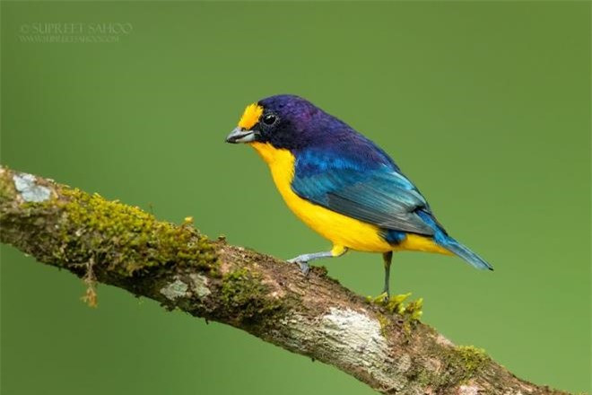 Nhiếp ảnh gia Supreet Sahoo là người yêu thích du lịch mạo hiểm. Anh thích khám phá thiên nhiên hoang dã trong những khu rừng ở Mỹ Latinh. Anh khiến người xem ngỡ ngàng bởi những bức ảnh tuyệt đẹp ghi lại khoảnh khắc diệu kỳ của các loài chim sặc sỡ nhất nơi đây. Trong ảnh là chim Tanager đầu xanh.