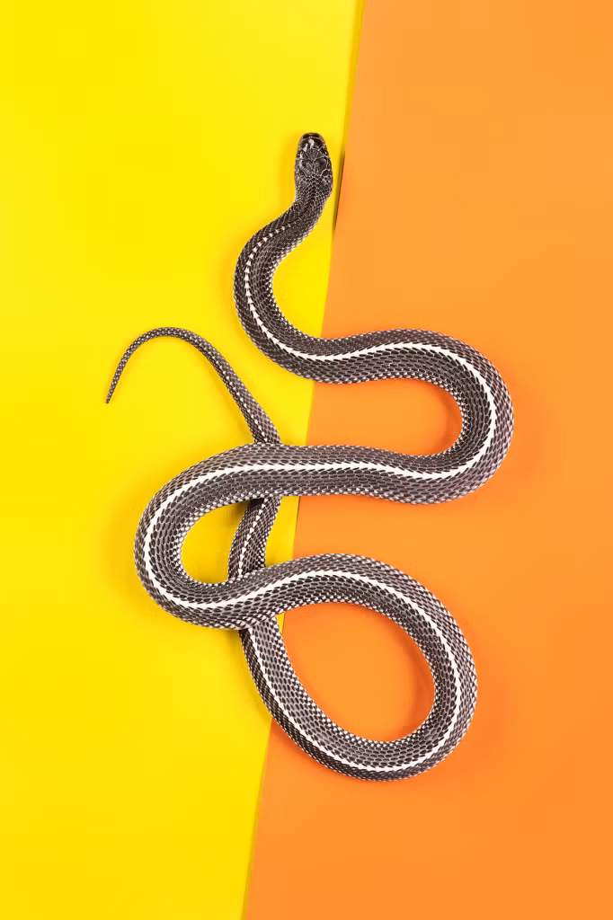 Trên nền những màu sắc hoặc nhã nhặn hoặc rực rỡ, Andrew McGibbon muốn chụp những bức chân dung có thể làm nổi bật được vẻ đẹp sang trọng, bí ẩn của loài động vật bò sát này.