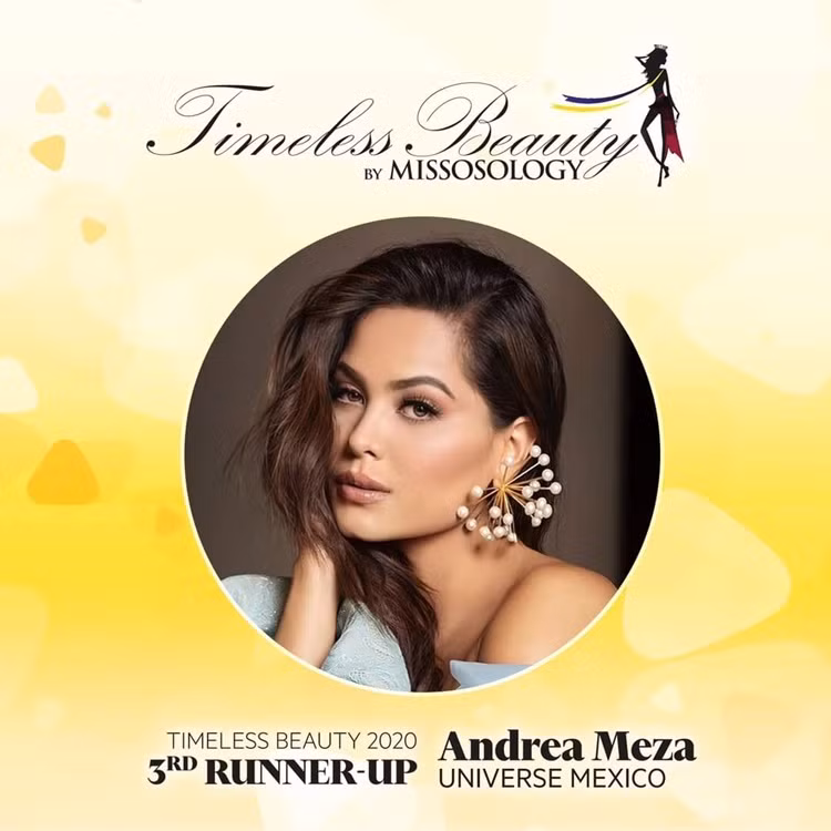 Ngoài ra, các vị trí tiếp theo trong top 5 "Vẻ đẹp vượt thời gian" gồm Á hậu 3 Hoa hậu Hoàn vũ 2020 - Adline Castelino, Á hậu 2 Hoa hậu Hoàn vũ 2020 - Janick Maceta, Hoa hậu Hoàn Vũ 2020 - Andrea Meza và Hoa hậu Hoàn vũ Thái Lan 2020 – Amanda Obdam.