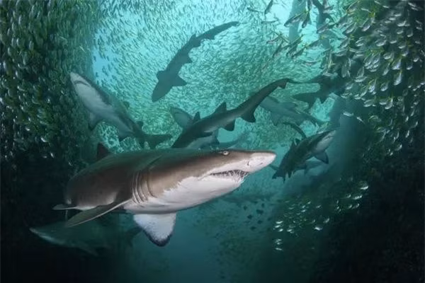 Bức ảnh nhà nhiếp ảnh Úc Nicolas Remy, chiến thắng trong hạng mục Conservation Photographer of the Year (HOPE) tại cuộc thi Ocean Photographer of the Year 2022. Một tập hợp những con cá mập xám trong tình trạng nguy cấp ở bờ biển New South Wales.