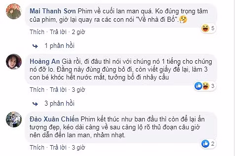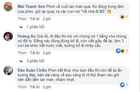 Nhiều khán giả cho rằng tình tiết này bị đẩy lên hơi quá vì ông Sơn có thể trao đổi với các con chứ không cần viết thư tay có vẻ bí ẩn như vậy. Hơn nữa, phản ứng của ba chị em khi bố bỏ đi cũng bị cho là hơi bị bi kịch hóa.