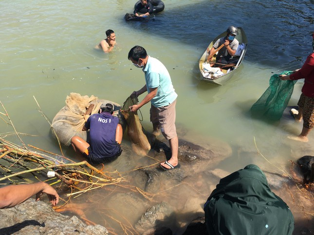 Hàng trăm người với đủ loại dụng cụ tập trung dưới chân đập thủy điện để đánh bắt cá. Nhiều người trúng lớn khi đánh bắt được những con cá ‘khủng’.