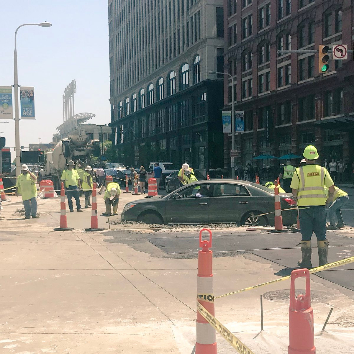 Camera ghi lại diễn biến sập mặt đường tạo thành hố ở Đà Nẵng ngày hôm nay, có thể cho thấy là mưa xối vào vết nứt của công trình khiến cho sụt lún dần.