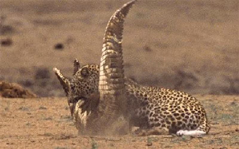 Sau cuộc đại chiến chớp nhoáng, con báo đã dễ dàng cắn chặt được vào cổ của chú cá sấu.