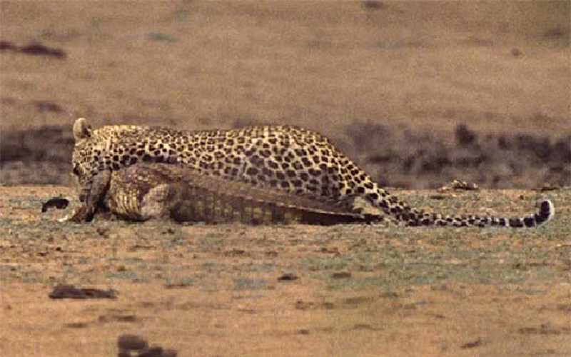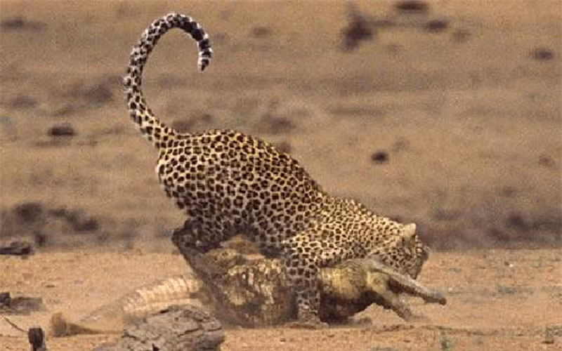 Thế nhưng, trước sức mạnh và hàm răng sắc bén của con báo hoa mai, chú cá sấu vẫn không có cơ hội sống sót nào. Chỉ vài phút đại chiến, cuối cùng, con báo hoa mai cũng giết được chú cá sấu.