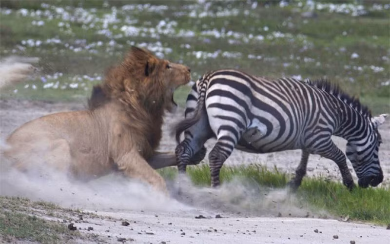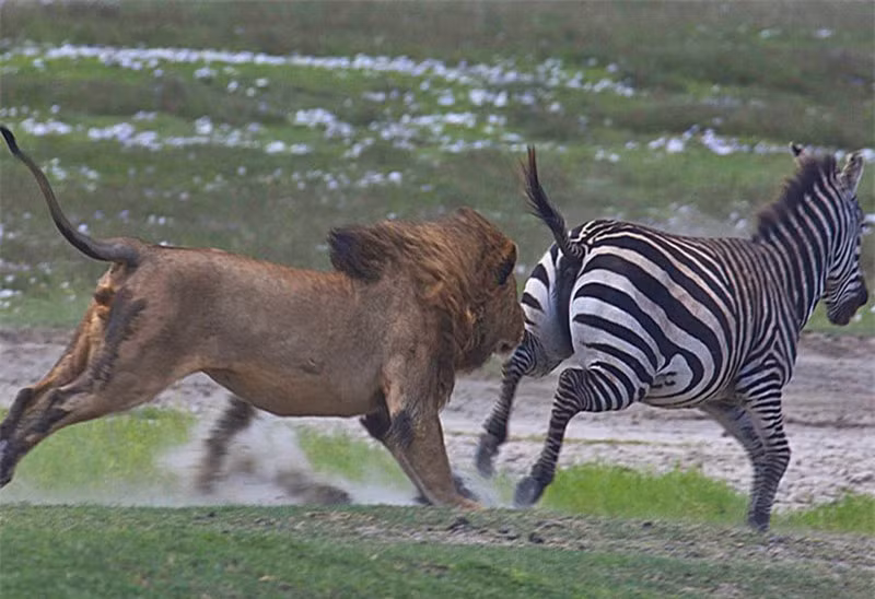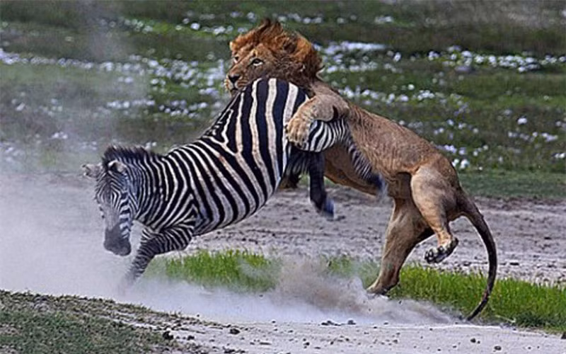 Dù ngựa vằn là con mồi yêu thích của sư tử nhưng đây cũng là con mồi mà nó không dễ để có thể bắt được. Không những thế, ngựa vằn còn có một vũ khí tự vệ vô cùng hiệu quả khi bỏ chạy, đó là cú đá hậu trời giáng có thể khiến bất cứ loài ăn thịt nào đều phải dè chừng.