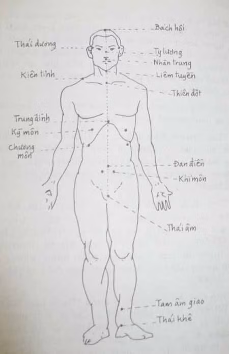 | Một số huyệt đạo chính trên cơ thể con người. |