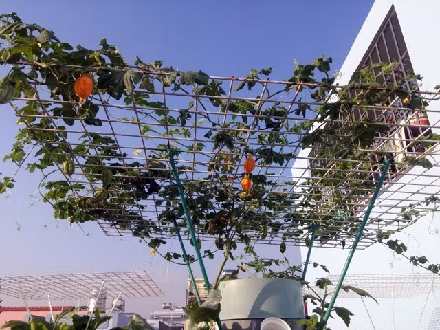 Sân thượng nhà anh Sơn rộng 21 m² nhưng diện tích vườn chỉ chiếm 10 m².