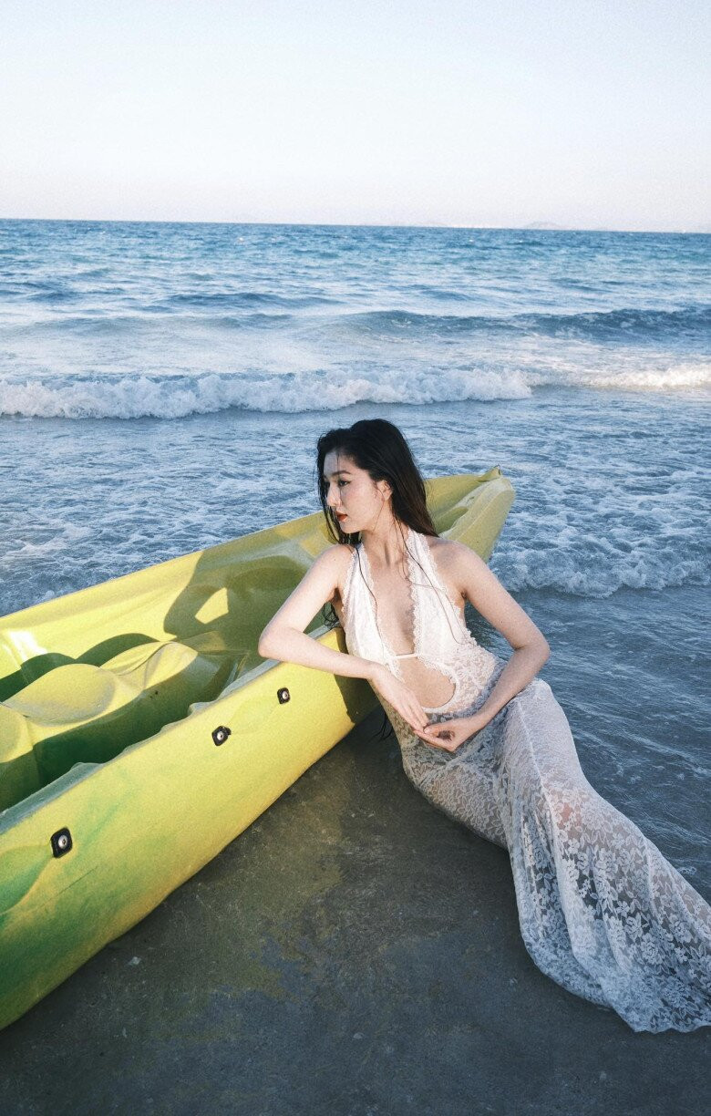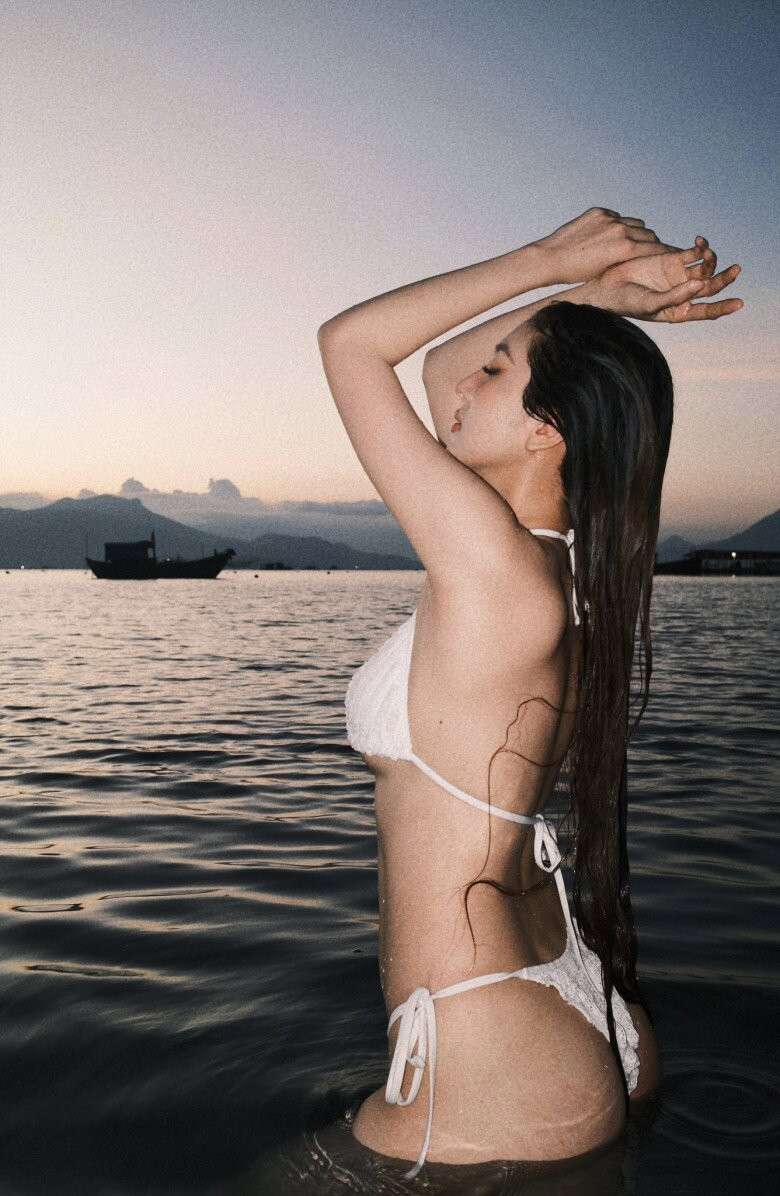 Dưới ánh hoàng hôn dịu nhẹ, Tuệ Như – bà xã của ca sĩ Hồ Quang Hiếu – khoe nhan sắc rạng rỡ trong bộ ảnh bikini đầy cuốn hút. Diện thiết kế hai mảnh màu trắng với phom dáng tối giản nhưng tôn dáng triệt để, cô chọn chất liệu vải gân mảnh nhẹ, tạo cảm giác mềm mại và bay bổng giữa không gian biển trời. Những đường cắt tinh tế cùng chi tiết dây buộc mảnh mai giúp tôn lên đường cong mềm mại, nữ tính.