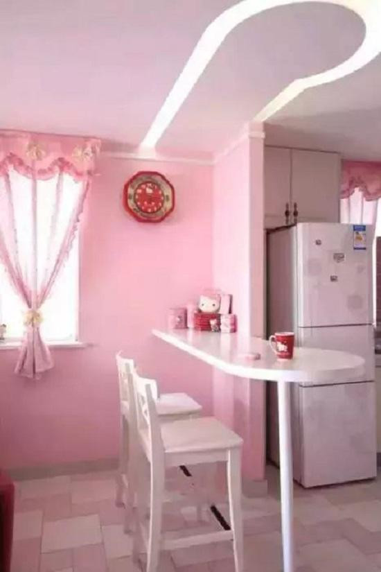 Cư dân mạng Trung Quốc hiện đang tỏ ra vô cùng thích thú và không ngừng chia sẻ câu chuyện thú vị của một cặp vợ chồng trẻ cùng với căn nhà đáng yêu của họ. Cặp vợ chồng trẻ mới cưới sống cùng nhau trong một căn nhà nhỏ nhưng khá sang trọng, hiện đại. Trong lúc người chồng đi công tác xa 3 tháng, vợ anh đã cải tạo toàn bộ căn nhà của hai vợ chồng thành một thế giới hoạt hình tràn ngập màu hồng và hình ảnh chú mèo Hello Kitty đáng yêu.