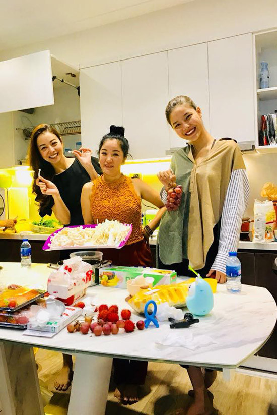 Quế Vân cùng Hương Trần, Kỳ Hân, Thúy Nga, Jennifer Phạm… đã có dịp tụ tập tại nhà Kỳ Hân để mừng nữ người mẫu trở về sau chuyến đi châu Âu. Chia sẻ về mối quan hệ, Quế Vân nói rằng mình và bà xã Việt Anh hiện tại đang vô cùng gần gũi.