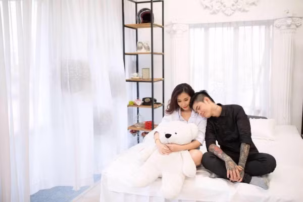 Không ngờ chàng soái ca xăm trổ gây sốt với clip đọc rap chọc con bú sữa cười khúc khích lại có vợ trẻ đẹp như vậy.