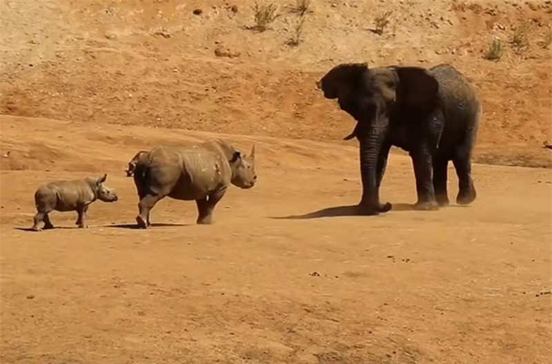 Được biết, đoạn video tê giác tấn công voi để bảo vệ con này được các du khách tình cờ ghi lại được ở một dòng sông cạn thuộc khu bảo tồn động vật hoang dã Erindi tại Namibia.