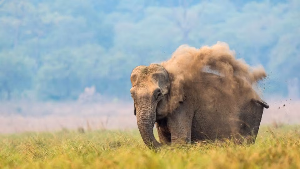 Mới đây, nhiếp ảnh gia động vật hoang dã người Ấn Độ Ganesh Namasivayam đã ghi lại được khoảnh khắc cực ấn tượng, khi voi khổng lồ ở vùng hoang dã tiểu bang Uttarakhand, miền Bắc Ấn Độ, dùng cát ẩm để chống nắng, chống nóng.