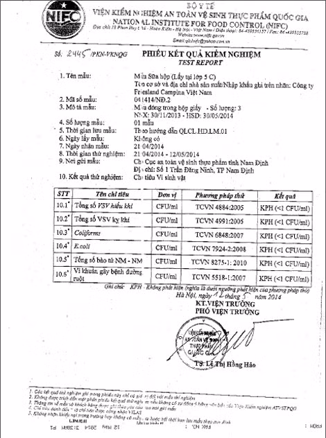 Công ty FrieslandCampina Việt Nam, đơn vị sở hữu nhãn hàng sữa Cô Gái Hà Lan khẳng định với kết quả của cơ quan có thẩm quyền như vậy, chất lượng sản phẩm Dutch Lady Sữa Chọn hoàn toàn đạt chất lượng đúng theo tiêu chuẩn công bố với Cục An toàn Thực phẩm và an toàn cho người sử dụng.