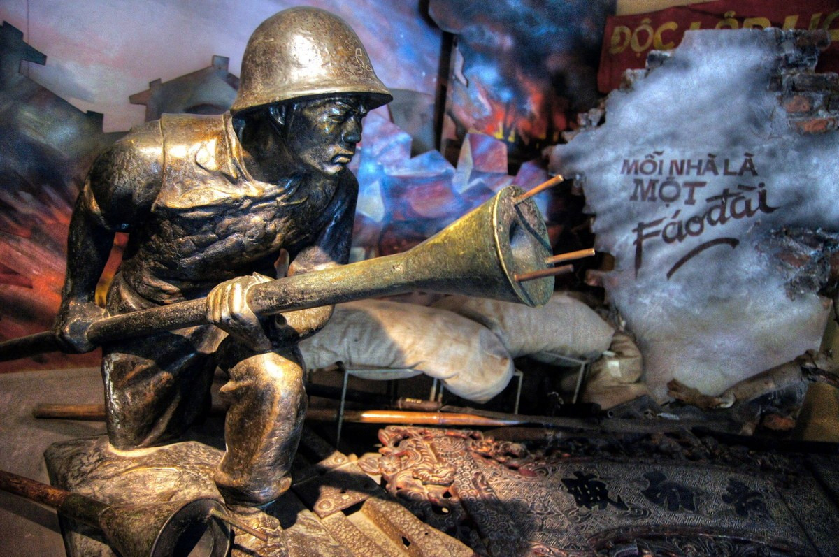 Hình ảnh người chiến sĩ Cảm tử quân ôm bom ba càng đánh xe tăng địch đã trở thành biểu tượng biểu tượng cho tinh thần "Quyết tử để Tổ quốc quyết sinh" những ngày đầu toàn quốc kháng chiến chống thực dân Pháp (1946-1947). Ảnh: Quốc Lê.