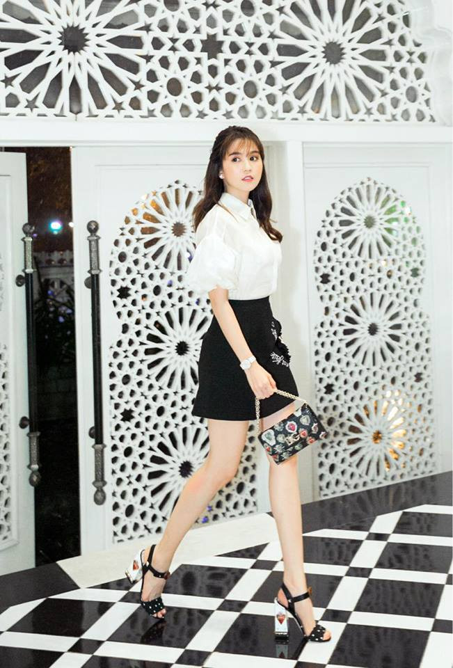 Dù ăn mặc khá kín đáo nhưng Ngọc Trinh vẫn khéo léo khoe đôi chân dài miên man hút mọi ánh nhìn.