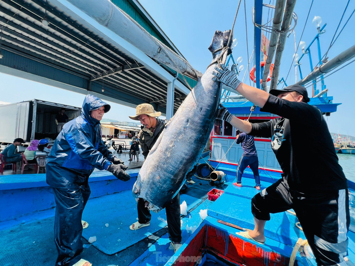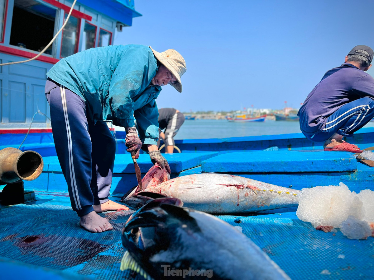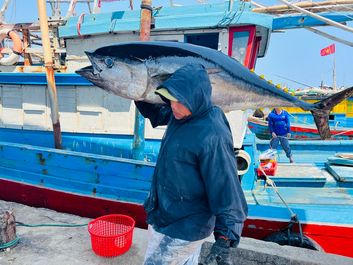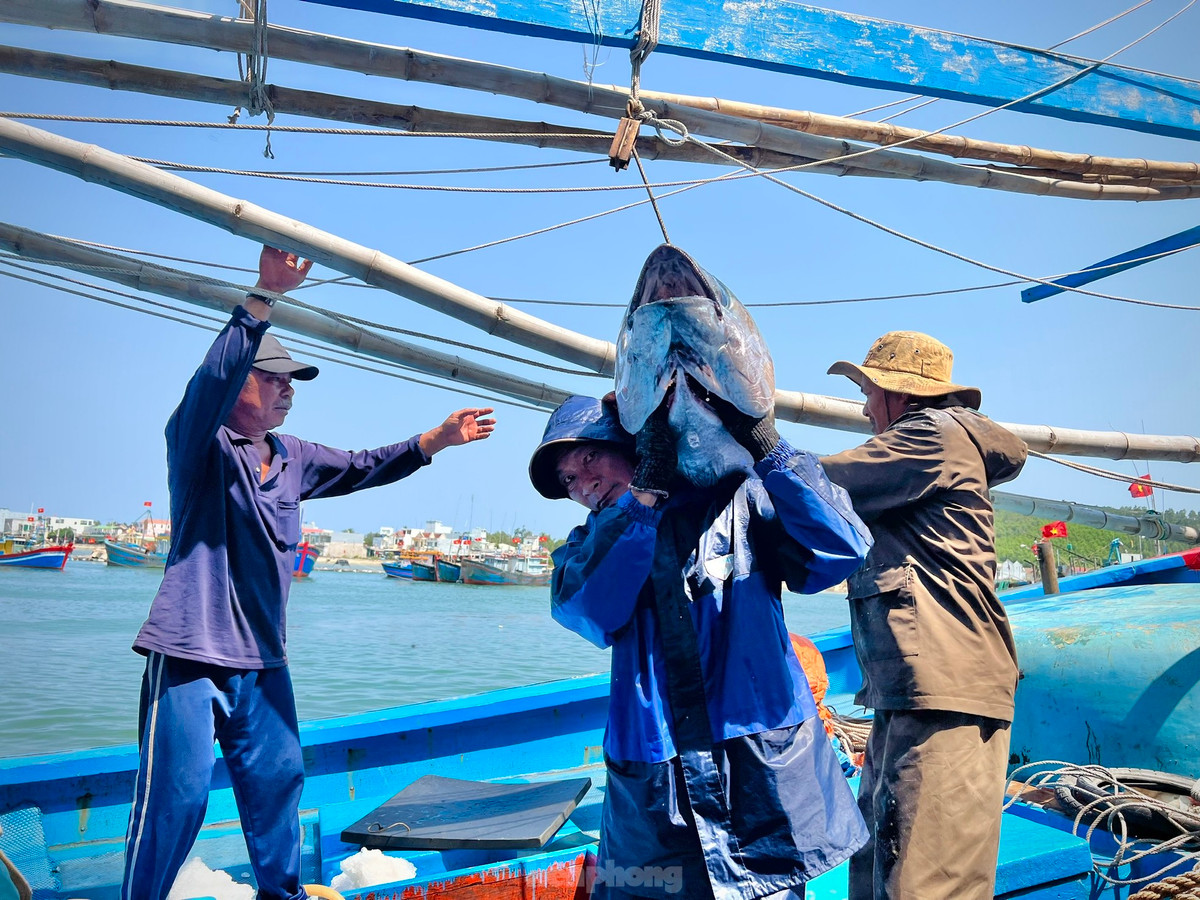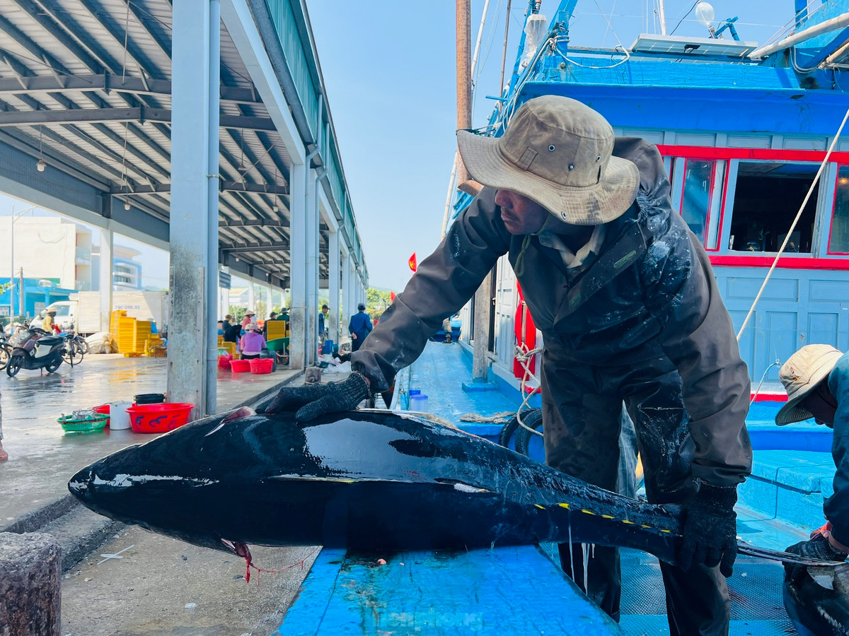 Thời điểm này đang là chính vụ khai thác cá ngừ đại dương, thế nhưng hàng chục tàu cá bám biển xuyên Tết Nguyên đán Giáp Thìn 2024 của ngư dân tỉnh Quảng Ngãi cập cảng với sản lượng đánh bắt thấp, thậm chí có nhiều tàu lỗ tổn, không đủ tiền chia cho thuyền viên. Ảnh: Nguyễn Ngọc