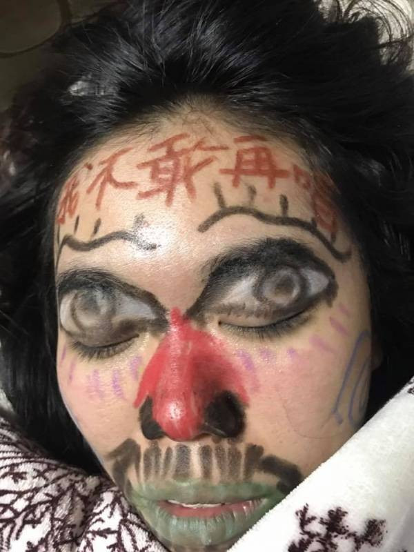 Mới đây, dân mạng rần rần truyền tay nhau bức hình người phụ nữ trẻ say rượu vì nhậu bữa Tất niên với bạn bè nên bị chồng vẽ chi chít lên mặt nhằm “trừng trị” tội ham vui vô bờ bến. Hình ảnh nhận được lượt chia sẻ lớn từ dân tình bởi tính lạ lùng của câu chuyện, bởi ai đời vợ lại “nát rượu” bao giờ.